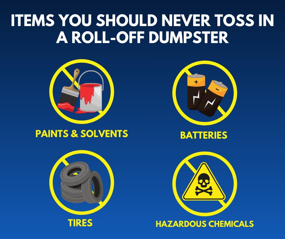 Renting a dumpster is one of the easiest ways to handle cleanouts, renovations, and large projects—but not everything can go inside one. Certain items are unsafe, illegal, or environmentally harmful to dispose of in a dumpster, and tossing them anyway can result in extra fees or serious hazards.
