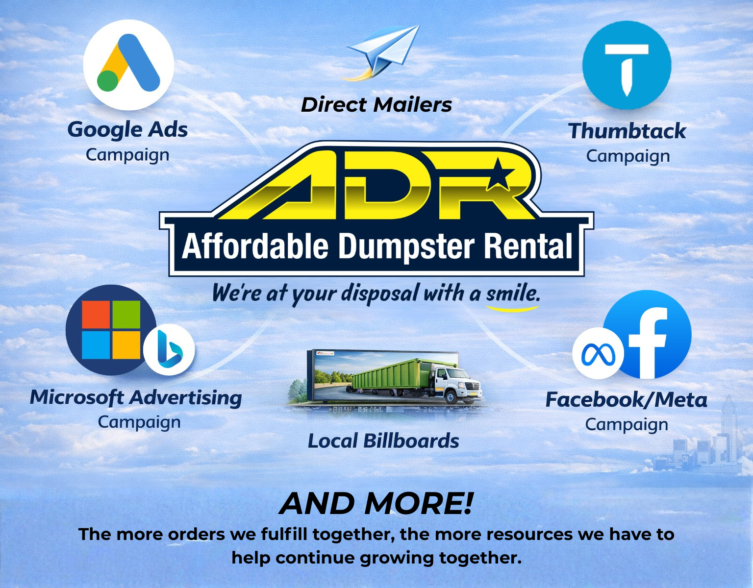 ADR runs a multi-channel demand engine designed to reach customers wherever they are looking for dumpster services. That demand is then routed to our hauler partners.