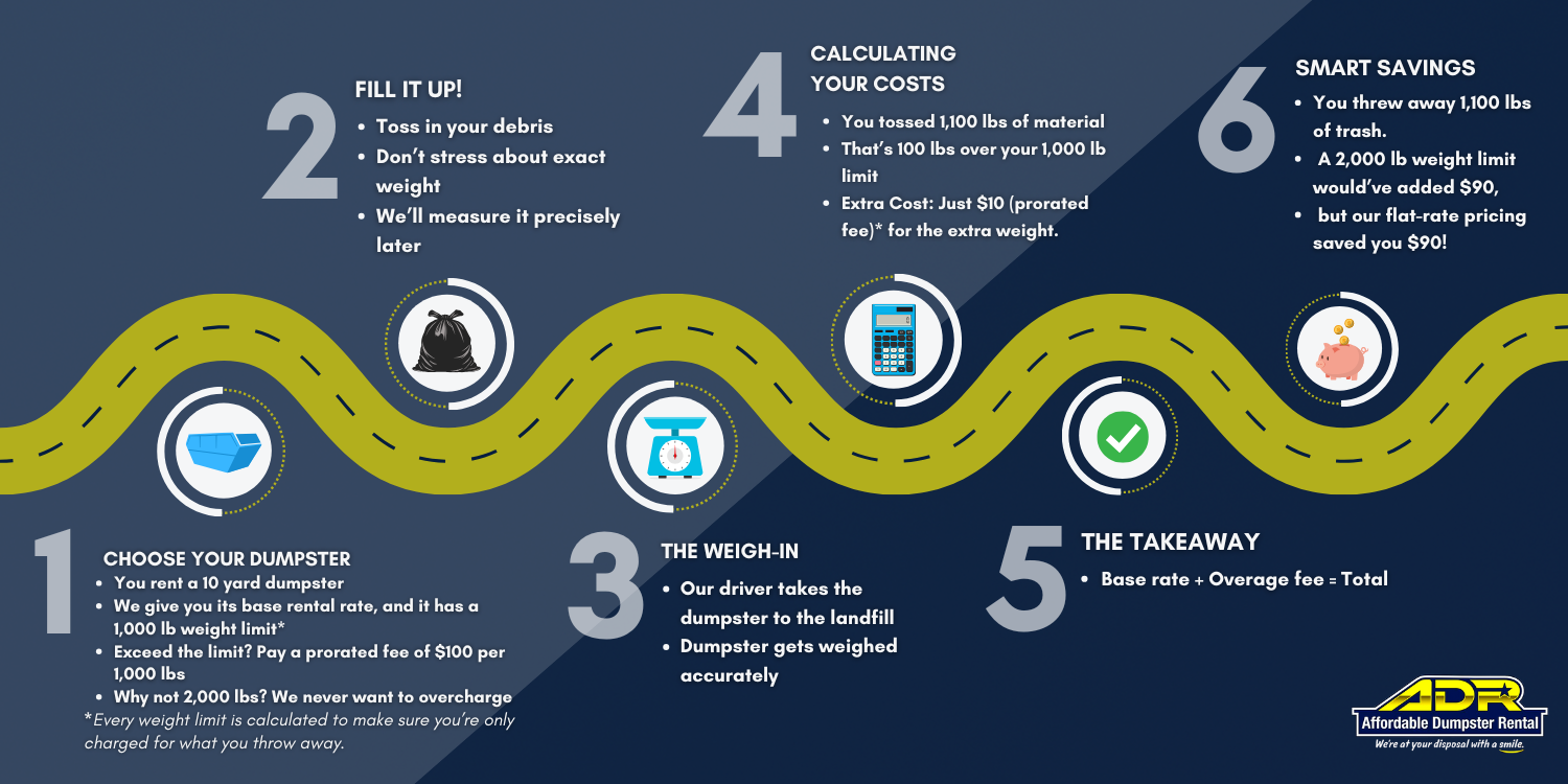 | 10 Yard | 1,000 - 2,000 lbs | Small cleanouts, light remodels | Small furniture, household junk, drywall scraps, yard waste |