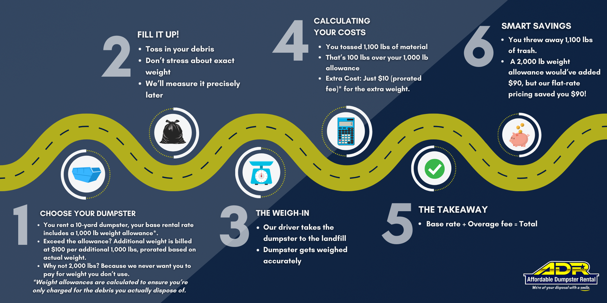 | 10 Yard | 1,000 - 2,000 lbs | Small cleanouts, light remodels | Small furniture, household junk, drywall scraps, yard waste |
